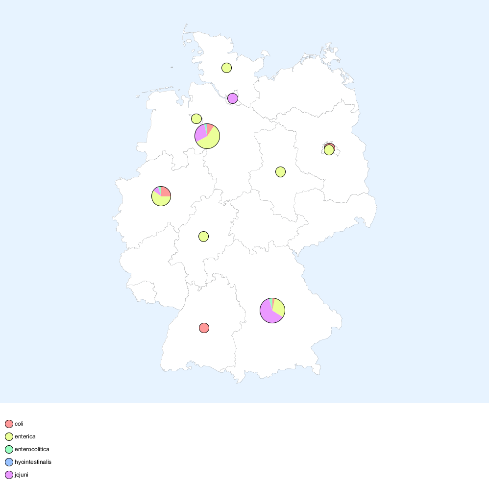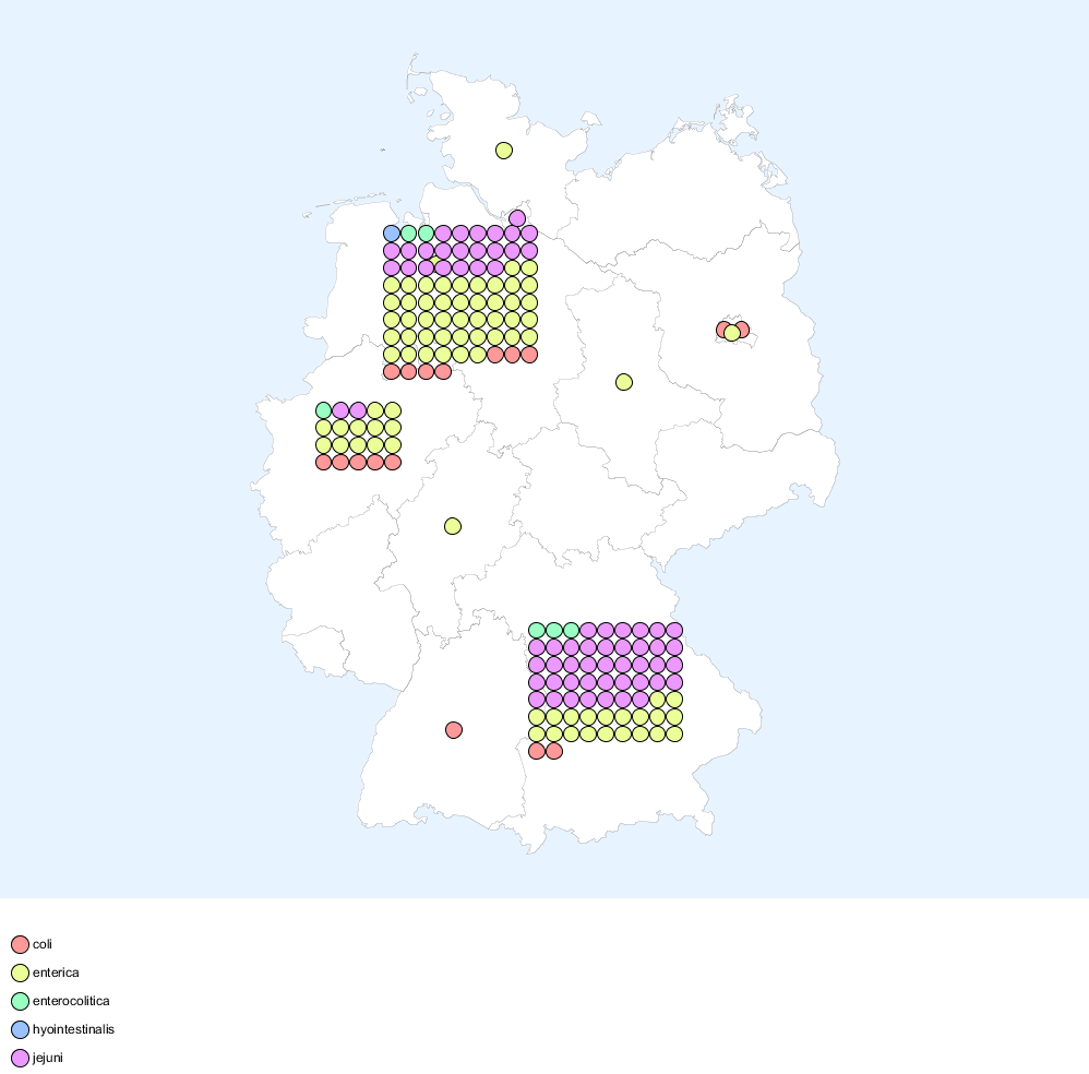 - as small circles, where multiple circles are drawn filled with the corresponding group colors
