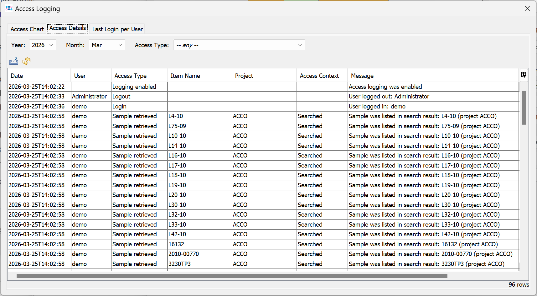 - A table with the last login time for each user (since access logging was enabled)