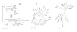 Dendrogram (left), circular tree (middle) and radial tree (right).