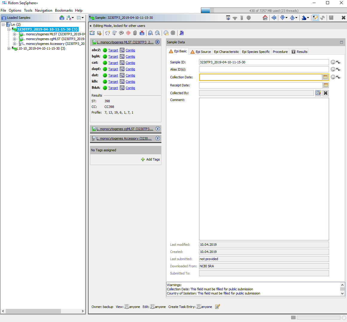 Submit Sample to cgMLST.org: Invokes a dialog to (re-)submit the Sample to cgMLST.org.