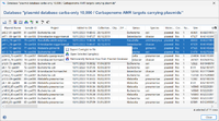 This windows lists all plasmids in a plasmid database for a Plasmid typing. The plasmid database is stored as a msh-file as an attachment to a Task Template. The first column contains the plasmid name, the second column the Sample ID. The next columns contain the Project and the default Project metadata. Further columns contain the MOB-Suite results for a Sample. The following functions can be used: