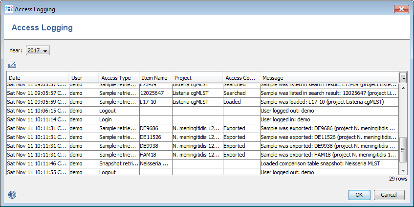 The access logging can only be configured and viewed by the Administrator (or any user with administration rights) by invoking the menu item