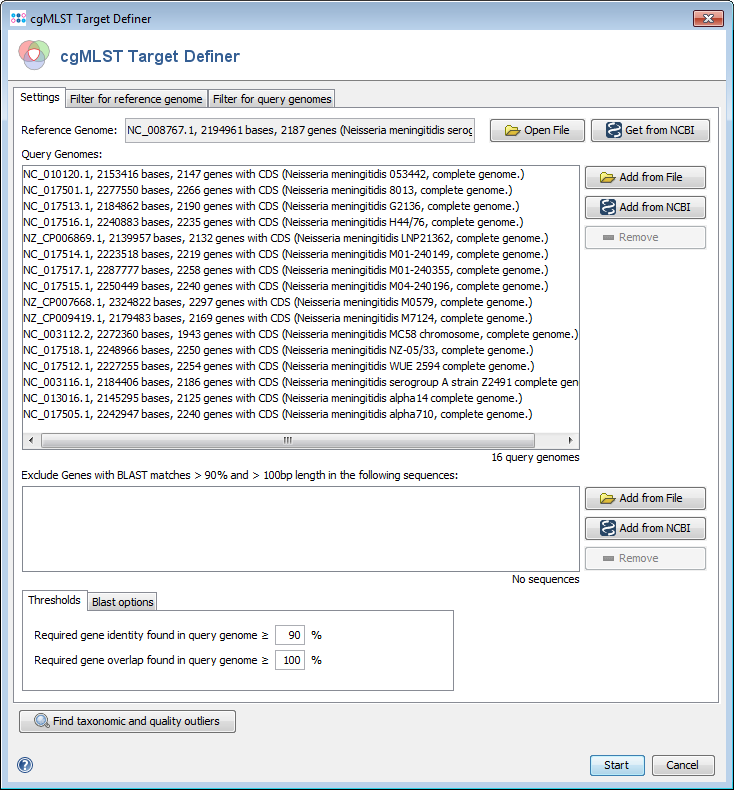 When the default filter settings are used, the cgMLST targets contain genes from the seed genome that