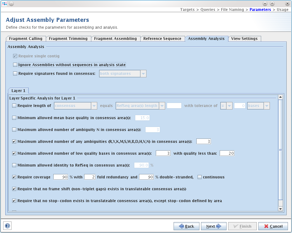 - defines the settings for the built-in assembler for first-gen sequence data.