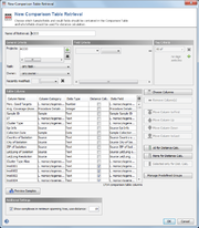 Dialog to create a new Comparison Table Retrieval
