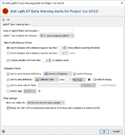EWAs can be added and deleted at any time when in the project manger window a project is selected and the Edit cgMLST Early Warning Alert Definitions button of this project is pushed. For adding a EWA the