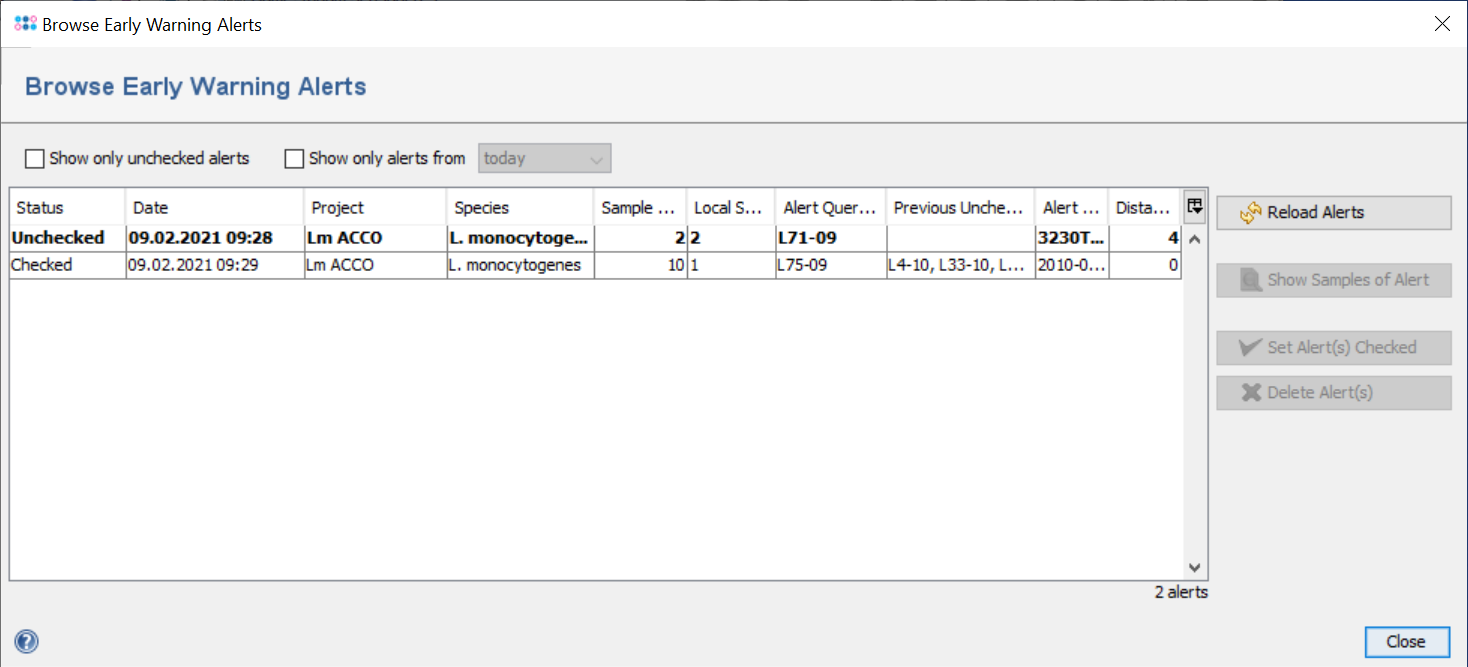 Checking Triggered cgMLST Early Warning Alerts