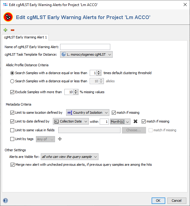 - Name of cgMLST Early Warning Alert Definition
