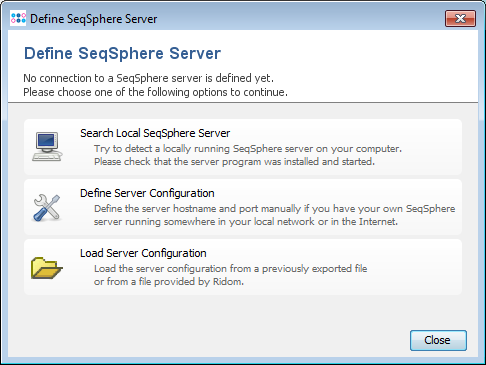 Installing the SeqSphere+ ClientClient Installation on Microsoft WindowsStart the installer executable and follow the messages of the installation wizard dialog. After the installation procedure is completed Ridom SeqSphere+ can be run by clicking the desktop icon or selecting the entry in the Start Menu. Ridom SeqSphere+ will create a profile directory located in your home directory (e.g., a path like C:\Documents and Settings\<username>\seqsphere on Windows XP or C:\Users\<username>\seqsphere on Windows 7 or later) respectively. This directory will contain the configuration and logging files. Note that on the first start of the server, the Windows firewall may show a security warning. Select "Allow access" in the security warning dialog.