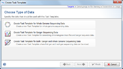 After choosing a wizard workflow a specific tasktemplate can be created. Further steps may or may not appear, depending on the chosen data type and wizard workflow: