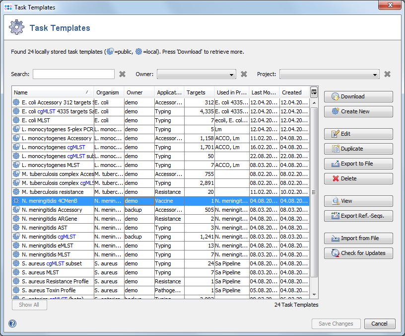 Hint: To create Task Templates for a new cgMLST scheme, use the cgMLST Target Definer. Standardized cgMLST schemes with a global nomenclature can be downloaded from the Task Template Sphere.