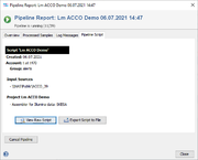Processed SamplesShows a table with all Samples that were processed, even if they failed and were not imported. Double-click or use the The columns of the table contain important QC fields and, if defined in the project, the results for the Early Warning Alerts and Local Single Linkage Clustering IDs. Log MessagesAll log messages that were reported while the pipeline was running. The log messages for each Sample are also added to the Sample and are shown in the Procedure tab of the Sample Overview. ScriptShows an overview of the pipeline script and allows to export the script. The export is useful if you want to transfer a script to another SeqSphere+ client computer to run it concurrently for scaling up. |