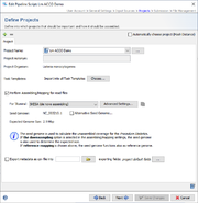 In the project section it is defined into what projects Sample data will be imported. At least one project must be defined here even if a project acronym is used in the file names and its position is defined in the previous section. If more than one project is defined here, automatic project choosing must be enabled, or each project must have an acronym that is used in the file names and their position defined in the previous section. In this case the project for each Sample is selected by the acronym that is found in the file name of the input data.