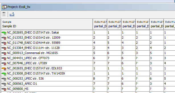 Double click a Project-node in the navigation tree or select "Open" in the context menu to view the Project overview table. This table displays field values for the loaded Samples of the Project.