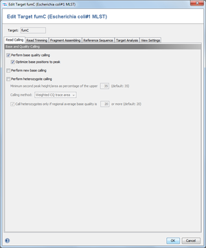This dialog defines, if SeqSphere+ should perform quality/base/heterozygote callings on all chromatograms that are added to a target.