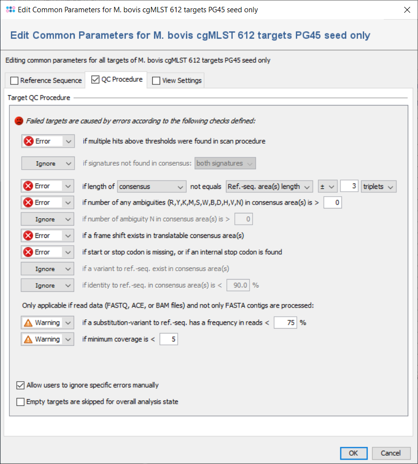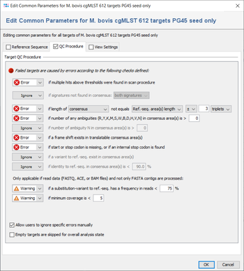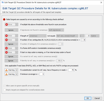 Target Analysis editor for a downloaded cgMLST Task Template: Only limited changes are allowed.